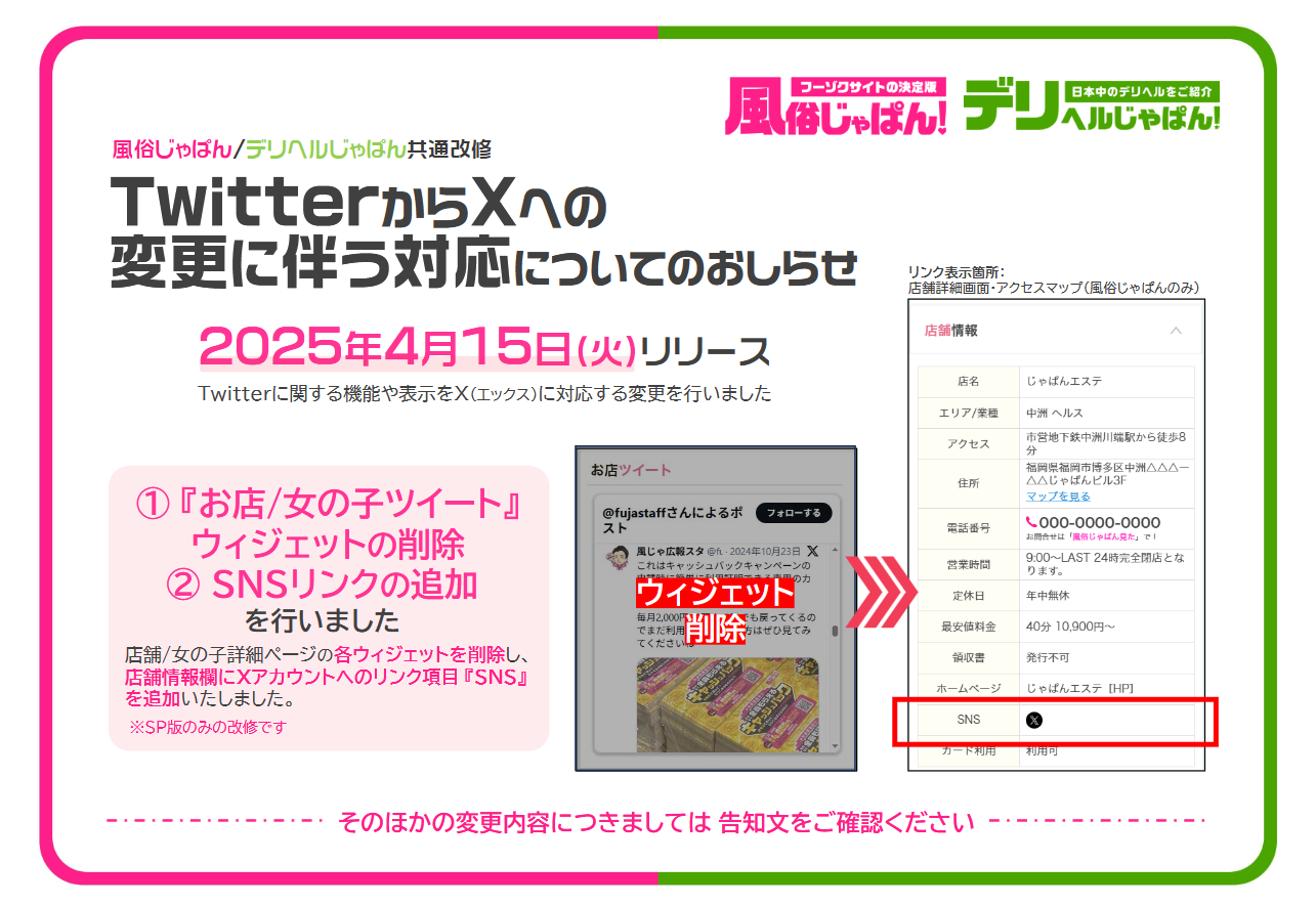 【 風俗じゃぱん・デリヘルじゃぱん:Twitter表記・機能に関するXへの変更対応 】詳細資料