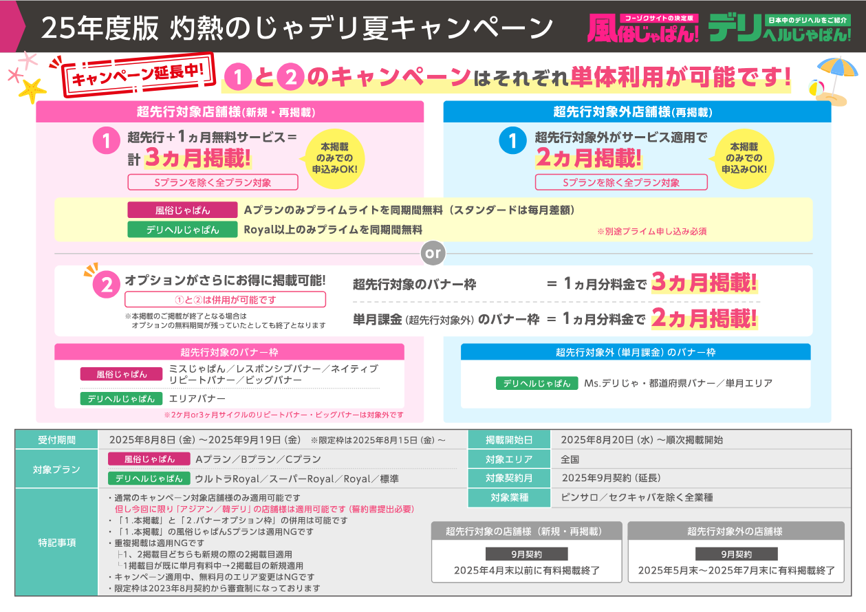 【 風俗じゃぱん&デリヘルじゃぱん:25年度版 灼熱のじゃデリ夏キャンペーン延長 】詳細資料