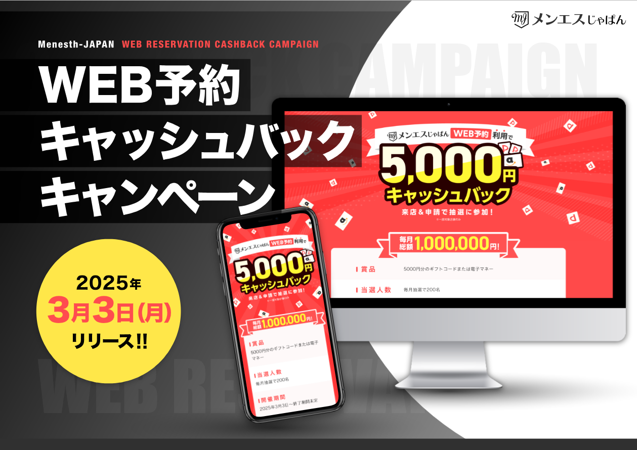 ●この度、メンエスじゃぱんにて、3月3日(月)より、『 WEB予約キャッシュバックキャンペーン 』を開催いたします!