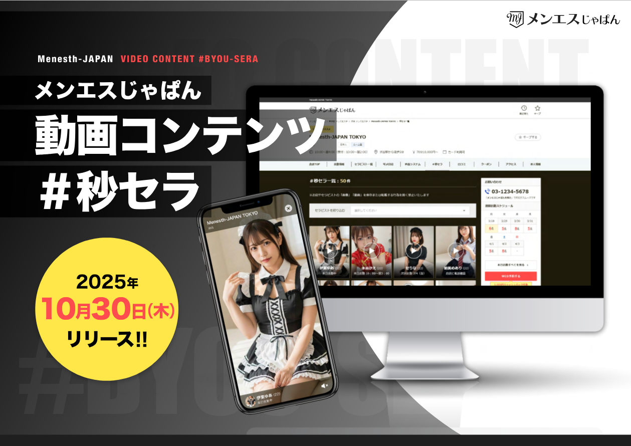 ●この度、メンエスじゃぱんにて、動画コンテンツ『 #秒セラ 』をリリースいたしましたのでお知らせいたします。