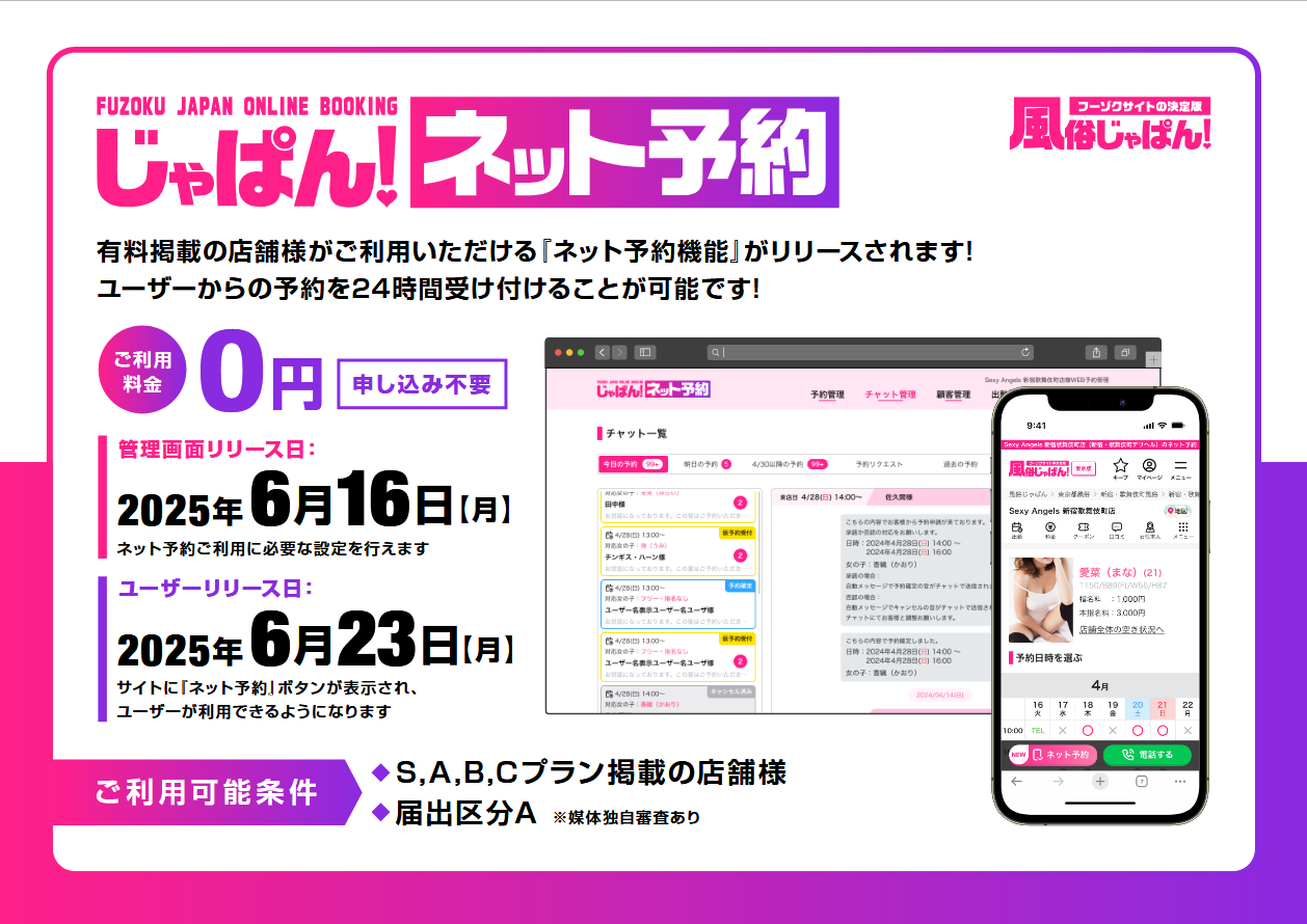 ●この度、風俗じゃぱん!にて、ネット予約機能、その名も『 じゃぱんネット予約 』がリリースされることとなりました!