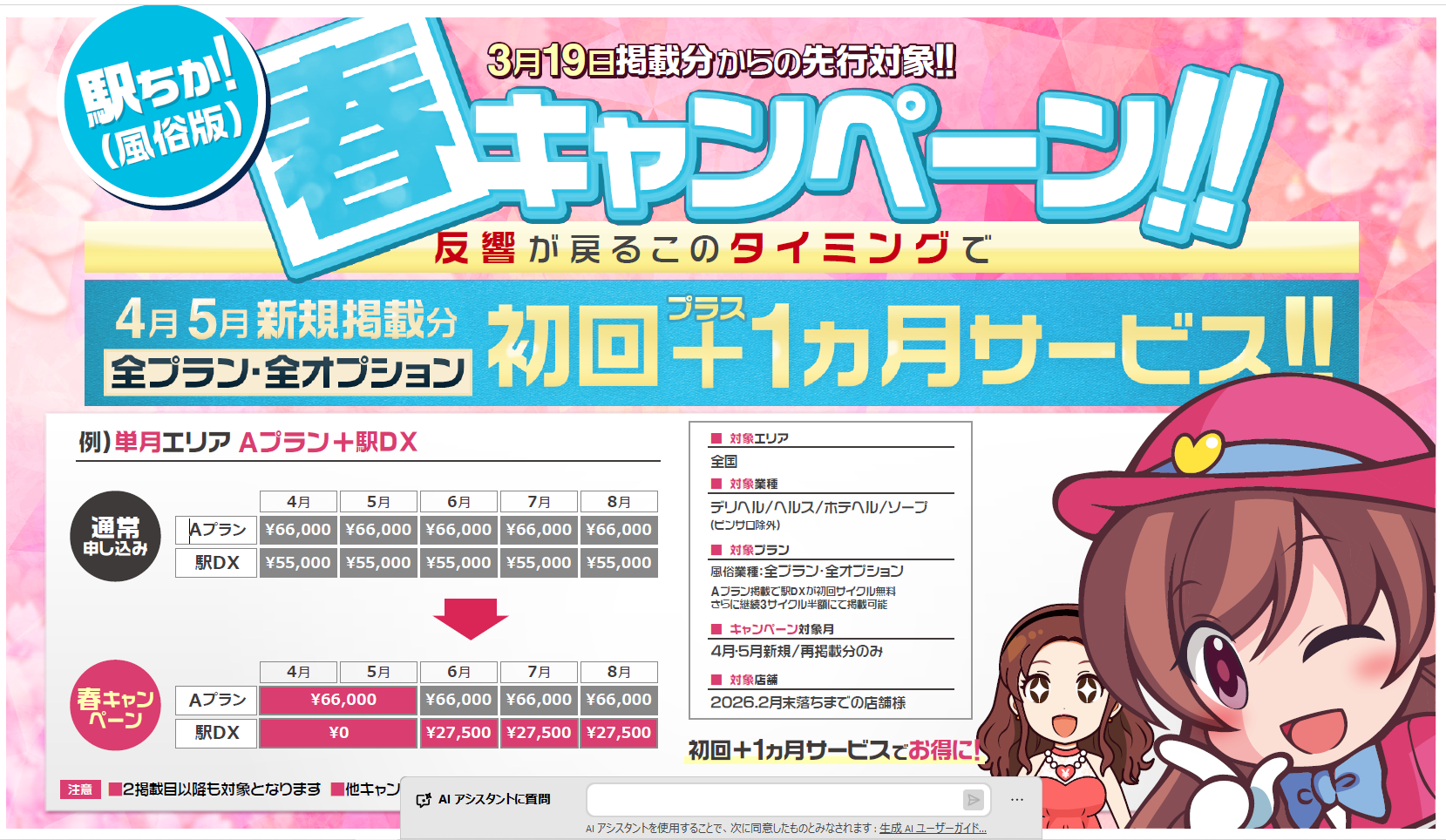 ●風俗業種とメンズエステ業種(福岡県以外)に関しましては、春キャンペーンの内容が異なりますので、ご注意ください。