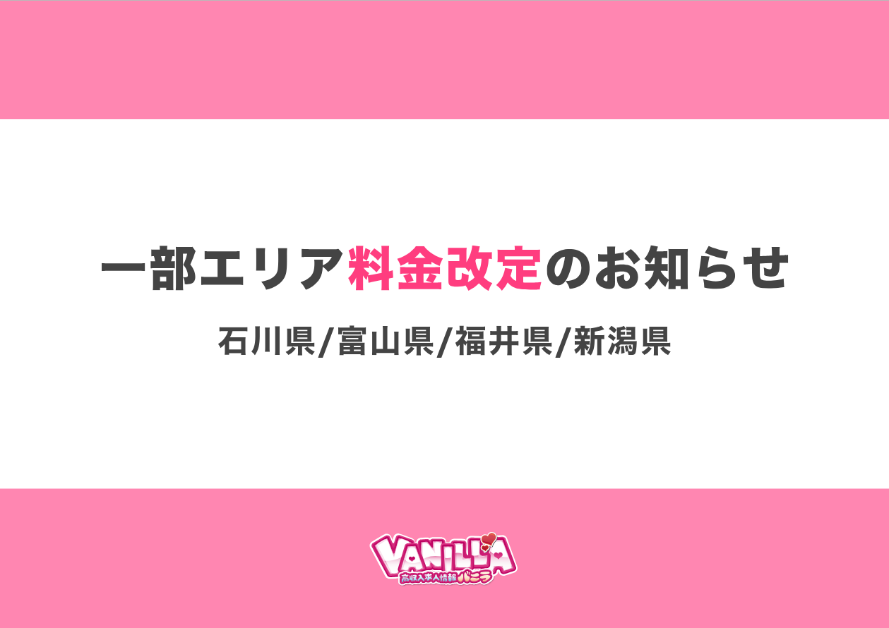 ●この度、高収入求人情報 VANILLA(バニラ)にて、「 石川県 」「 富山県 」「 福井県 」「 新潟県 」の一部掲載料金の改正が決定いたしましたので、お知らせいたします。