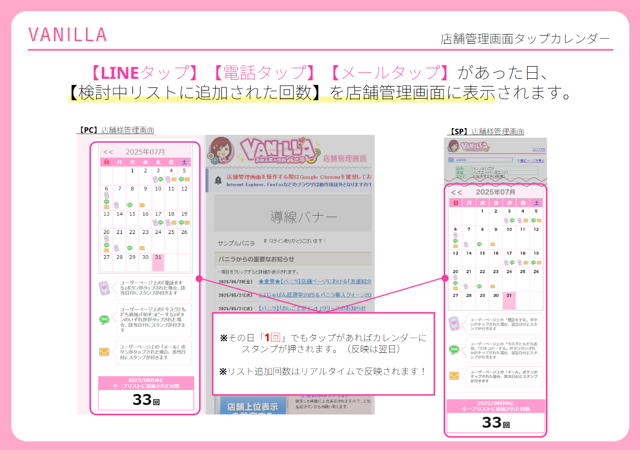 【 バニラ:LINE・電話タップ・メールお知らせカレンダー表示エリア追加 】リリース時資料
