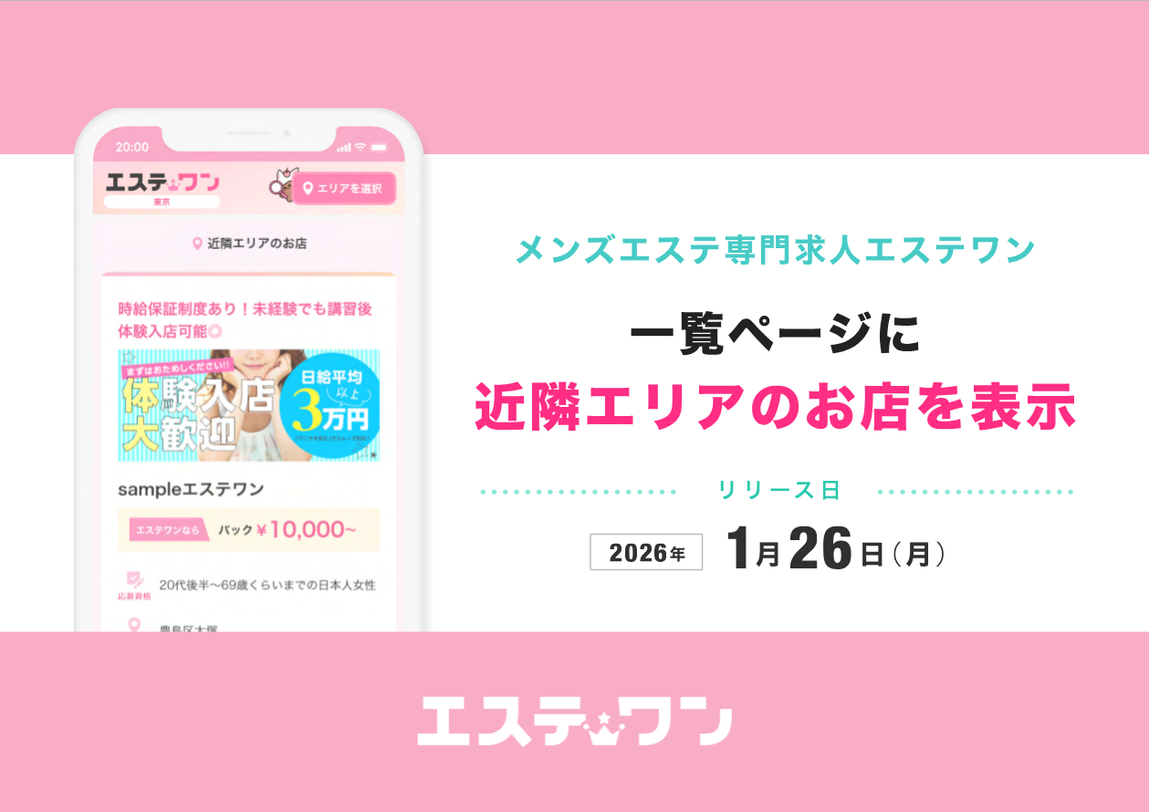 エステワン『 一覧ページに近隣エリアのお店を表示 』リリースのお知らせになります。