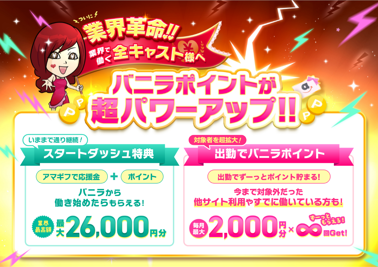 対象キャストが超拡大!『 バニラポイント 』大幅リニューアルのお知らせになります。