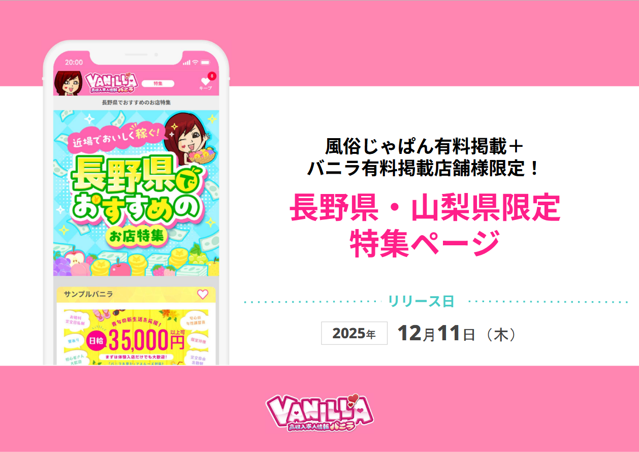 【 バニラ:長野県・山梨県限定特集ページリリース 】詳細資料