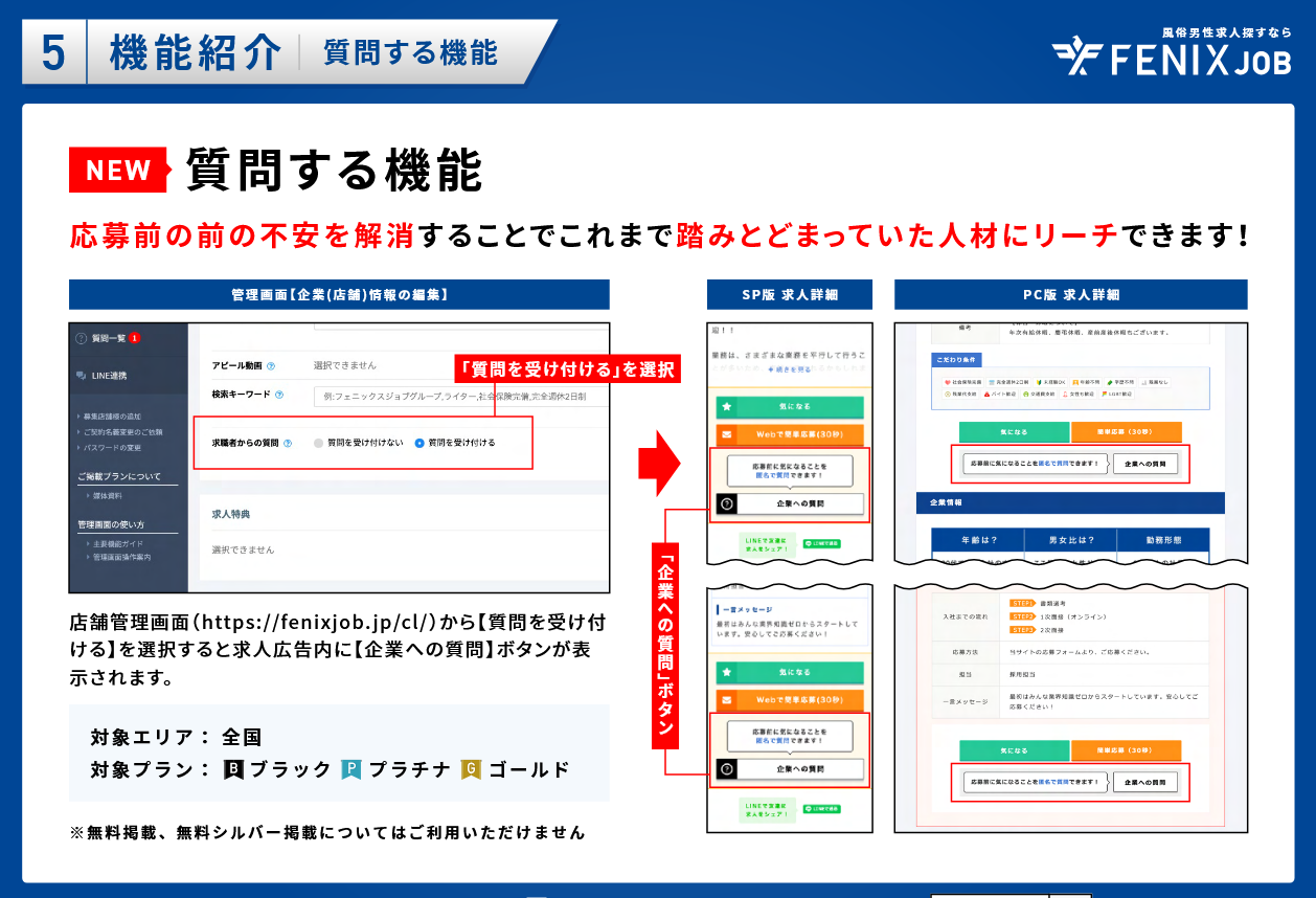 ●この度、FENIX JOB(フェニックスジョブ)より、掲載中企業様に対し、求職者様が質問できる機能をリリースいたしました。