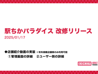 Information 【 駅ちか!パラダイス 】『 店舗紹介動画 』実装のお知らせ